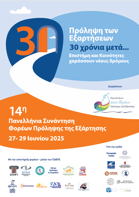 Details14η Πανελλήνια Συνάντηση Φορέων Πρόληψης της Εξάρτησης «ΠΡΟΛΗΨΗ ΤΩΝ ΕΞΑΡΤΗΣΕΩΝ: 30 χρόνια μετά… Eπιστήμη και Kοινότητες χαράσσουν νέους δρόμους» 27- 29 Ιουνίου 2025 Αθήνα Το Πανελλήνιο Δίκτυο Φορέων Πρόληψης της Εξάρτησης, το οποίο αναπτύσσει σημαντικές δράσεις Εκπαίδευσης Ενηλίκων, θα πραγματοποιήσει την Παρασκευή, 27 Ιουνίου, στις 18:00, μια σημαντική εκδήλωση με θέμα τις διεθνείς, ευρωπαϊκές και…